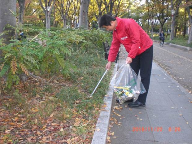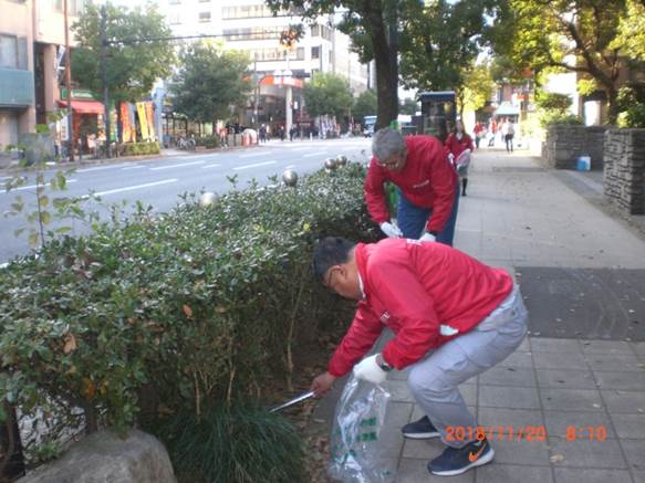 当社は有志16名が拠点に程近い靱(うつぼ)公園の四ツ橋筋沿いで、ポイ捨てされたごみを集めました。