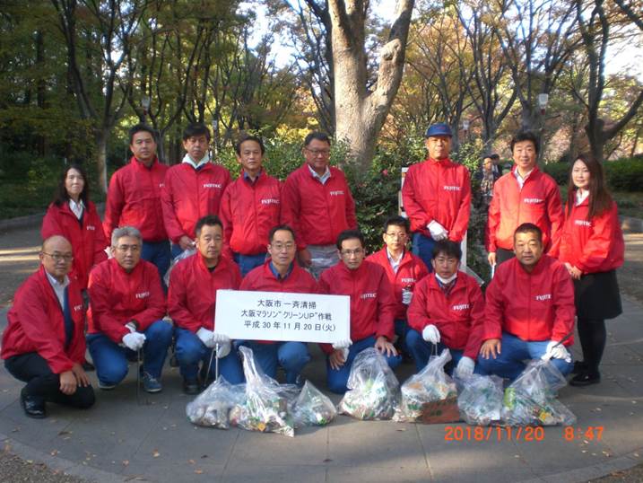 大阪市西区にあるフジテックの拠点「大阪フィット」では、大阪マラソンの時期に実施される「大阪マラソン“クリーンUP”作戦」に参加しました。 2011年から毎年活動に参加し、今回で8回目です。