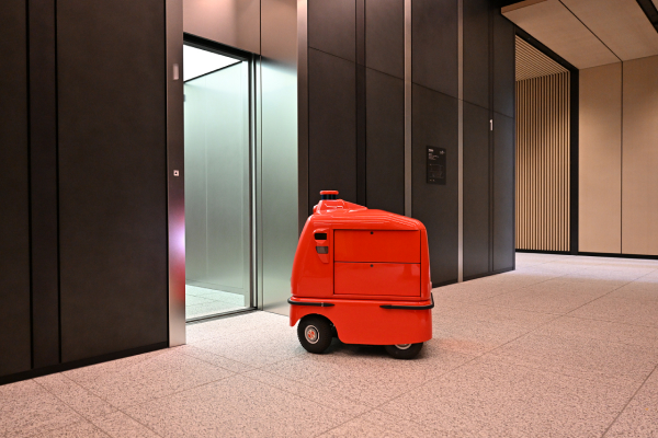 フジテックのロボット連携機能は、クラウドによる無線通信や接点信号のやり取りを通じてエレベータとロボットが直接対話。 人の手を借りることなく、多層階をシームレスに移動できる環境を実現し、人手不足解消に貢献します。
