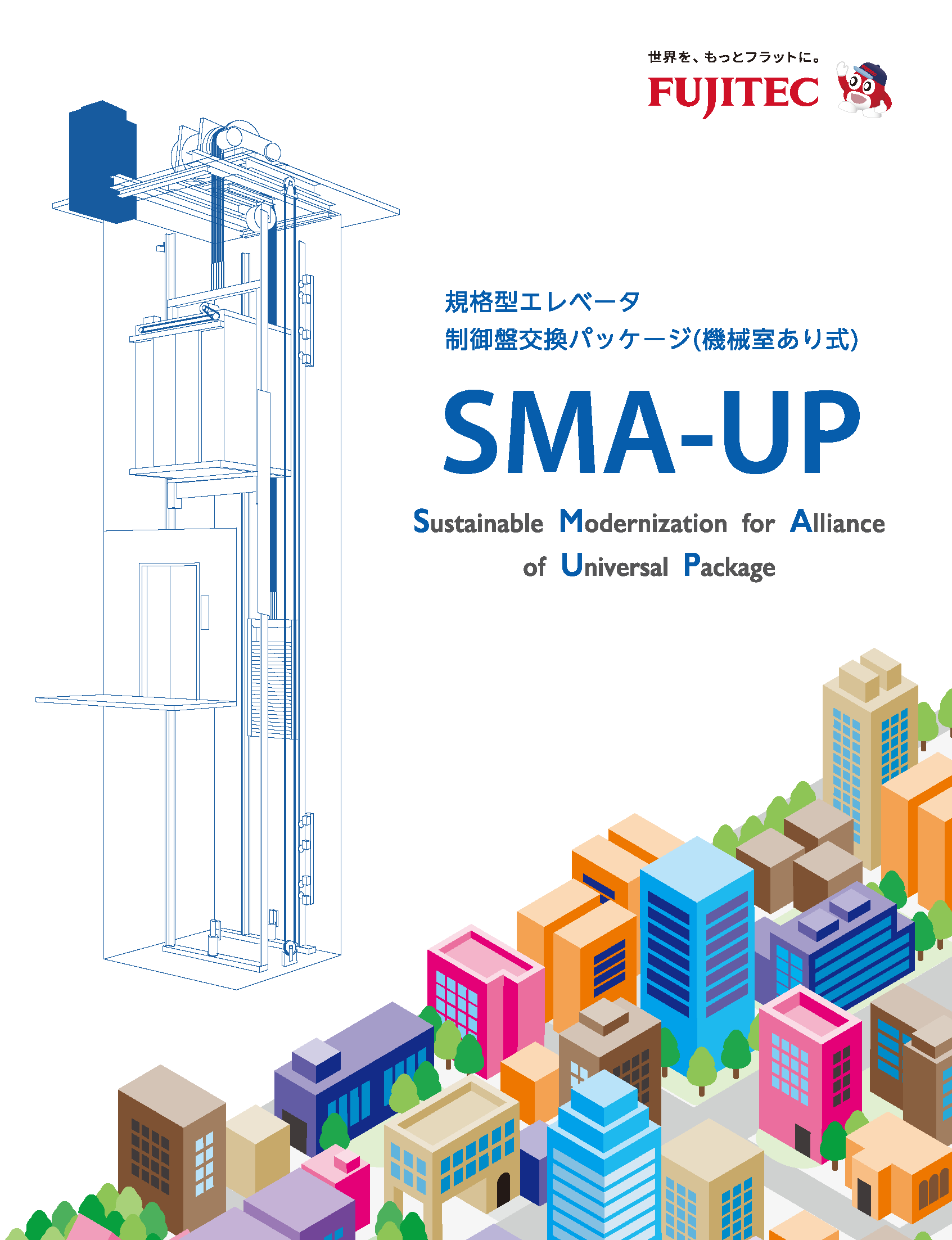 「SMA-UP」は、メーカーを問わずエレベータのリニューアルを可能にした、フジテックのリニューアルメニューです。